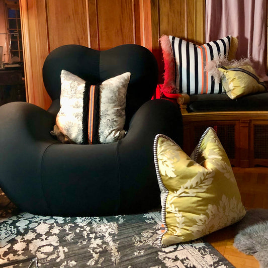 ⋆ Les coussins de Léonie-Emmanuelle combinent de manière ludique son amour du glamour et de l'éclectique, avec une pointe de sa touche classique. ⋆