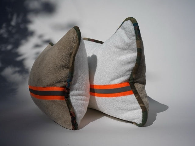 MATERIAL: 100% cotton terrycloth, reflective band, 100% cotton ratine  camouflage piping.